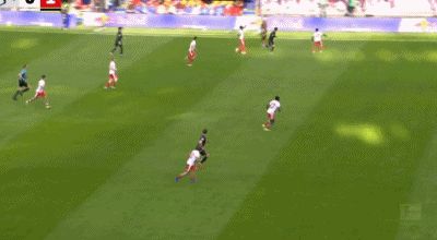 第40分鐘,法比安-里德傳中,菲爾豪爾推射破門,奧格斯堡1-0萊比錫