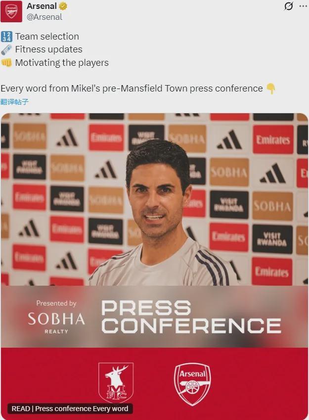 目前阿森納已經(jīng)完成了本場比賽前的最后一節(jié)訓(xùn)練課,不過有8名球員沒有參加訓(xùn)練,他們是:廷貝爾、懷特、薩利巴、加布里埃爾、賴斯、祖比門迪、梅里諾和厄德高。