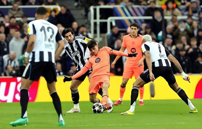 上半場(chǎng)45分鐘是戰(zhàn)術(shù)博弈,紐卡依托主場(chǎng)優(yōu)勢(shì)以高強(qiáng)度逼搶壓迫巴薩后場(chǎng)出球,第4分鐘托納利的角球便造成霍安·加西亞脫手,庫巴西門線救險(xiǎn),成為主隊(duì)全場(chǎng)戰(zhàn)術(shù)的縮影。球隊(duì)始終用身體對(duì)抗打亂巴薩的傳控節(jié)奏,用快速反擊制造威脅。巴薩控球占優(yōu),但受限于中場(chǎng)核心缺席與對(duì)手的強(qiáng)硬逼搶,傳球成功率大幅低于賽季平均水平,難以將球有效滲透至對(duì)方禁區(qū),亞馬爾甚至遭遇歐冠生涯首次全場(chǎng)0過人的限制,劉易斯·霍爾的貼身防守讓這位18歲天才無法發(fā)威,這也是接下來次回合巴薩需要解決癥結(jié)。
