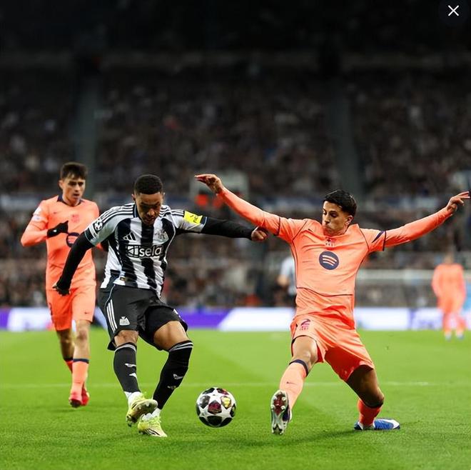 本場(chǎng)比賽的基調(diào),從賽前兩隊(duì)的傷病名單便已注定。紐卡方面,中場(chǎng)核心布魯諾·吉馬良斯腿筋傷缺,舍爾、利夫拉門托等主力后衛(wèi)集體缺席,防線被迫重組,主帥無奈將戰(zhàn)術(shù)從常規(guī)的4-3-3高壓逼搶,調(diào)整為5-4-1密集防守+快速反擊,依靠邊路突擊與定位球?qū)ふ覚C(jī)會(huì)。巴薩的孔德、巴爾德兩名主力邊衛(wèi)傷缺,坎塞洛被迫客串左后衛(wèi),傳控核心德容的缺席則讓球隊(duì)中場(chǎng)調(diào)度能力下滑,這也是客場(chǎng)爆冷的主因。