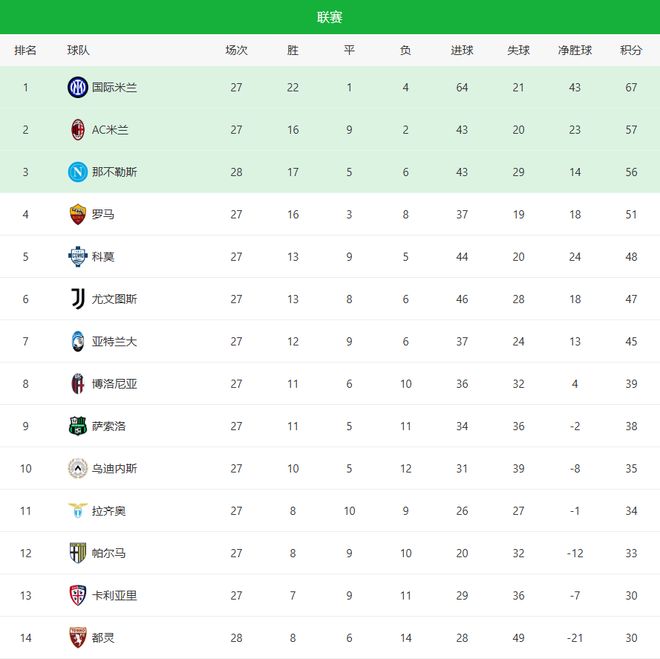- 德比遭雙殺!國(guó)米意甲領(lǐng)先優(yōu)勢(shì)縮水到7分 但爭(zhēng)冠懸念依舊不大