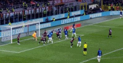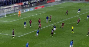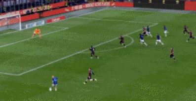 第35分鐘,福法納送出直塞,埃斯圖皮尼安禁區(qū)內(nèi)勁射破門,米蘭1-0打破僵局!