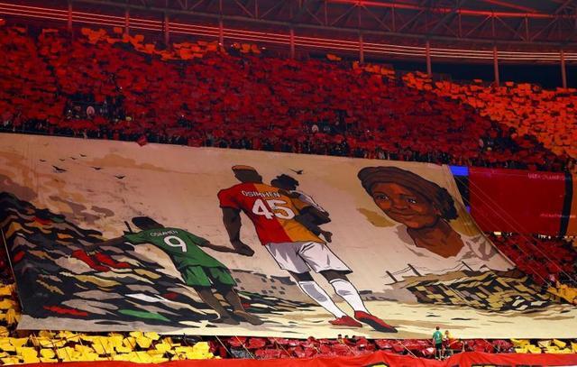 比賽還沒開踢,加拉塔薩雷的看臺上就緩緩展開了一幅巨大的看臺海報(Tifo)。畫面里不僅畫著奧斯梅恩,還有他早逝的母親,兩人都穿著球衣。海報下方還配了一句極其戳心的話:“我們是一家人,家人就是一切?!?/p>