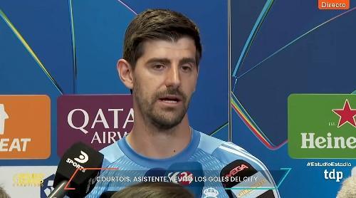 歐冠1/8決賽首回合,皇馬主場3-0戰(zhàn)勝曼城,賽后在混采區(qū),有記者向庫爾圖瓦問及阿隆索。