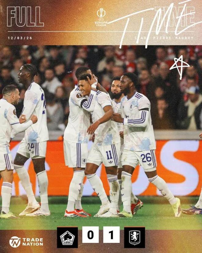 - 2026年03月13日 維拉客場1-0里爾占據(jù)晉級先機 沃特金斯頭球吊射破門+失單刀