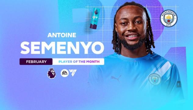- 5場(chǎng)比賽3球1助,曼城冬窗新援塞門約當(dāng)選英超2月最佳球員
