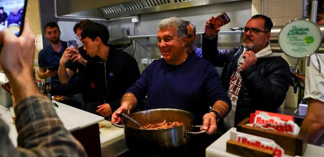 拉波爾塔曾現(xiàn)身下廚做通心粉、切火腿,或是在梅爾卡巴納市場爬上運貨公牛造型裝置。他在每一場組織的活動中都收獲了熱烈的群眾支持。這些場景強化了這樣一種形象:一位在會員間感到自在、將俱樂部視作大家庭的候選人。這與拉波爾塔對維克托-豐特的看法形成鮮明對比,他在近日多次稱對方為“精英主義者”。