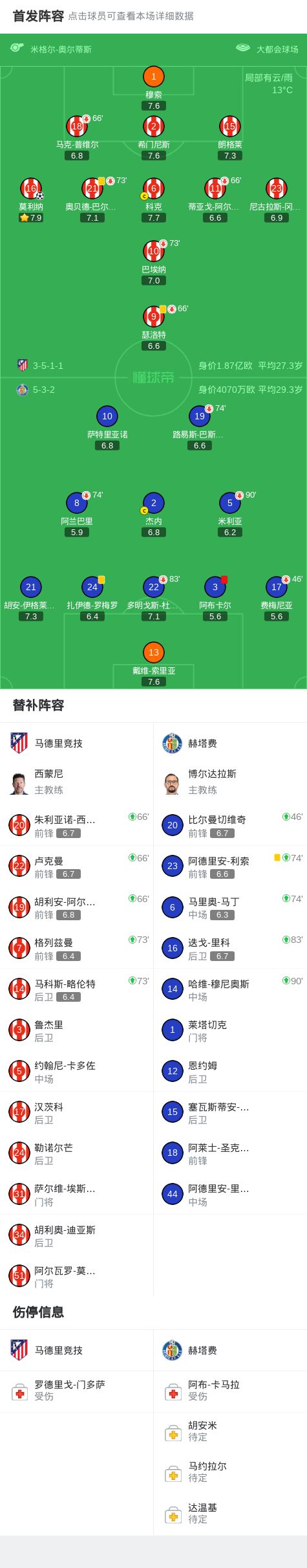 - 馬競vs赫塔費:瑟洛特、阿爾馬達、岡薩雷斯首發(fā),穆索出戰(zhàn)