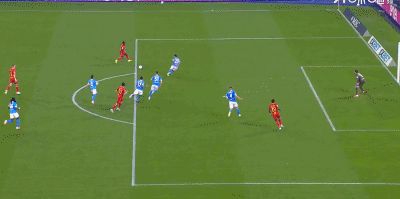第46分鐘,扳平比分,波利塔諾助攻,霍伊倫搶點(diǎn)破門,那不勒斯1-1萊切