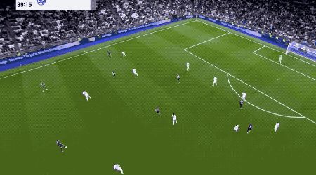 第90分鐘,剛剛替補(bǔ)登場的居萊爾在本方半場得球,看到門將站位靠前,他毫不猶豫直接起腳吊射。皮球從半場飛越門將頭頂直入球網(wǎng),皇馬4-1,伯納烏瞬間陷入瘋狂,這粒進(jìn)球甚至讓人想起當(dāng)年貝克漢姆的經(jīng)典遠(yuǎn)距離吊射。