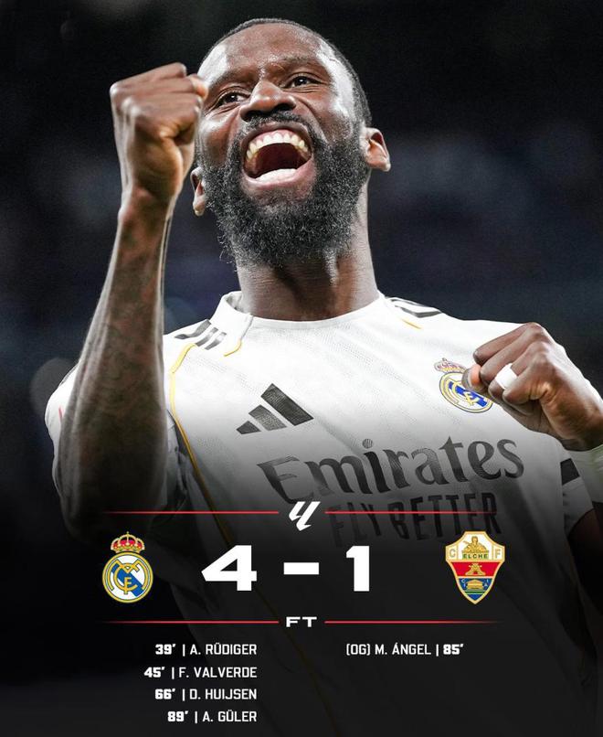 不過比賽尾聲還是出現(xiàn)了一點(diǎn)小插曲。第85分鐘,巴爾韋德后場解圍失誤,埃爾切抓住機(jī)會發(fā)動進(jìn)攻,迪安加納傳中后造成防守混亂,皇馬球員曼努埃爾·安赫爾不慎自擺烏龍,埃爾切扳回一球,埃爾切1-3皇馬。