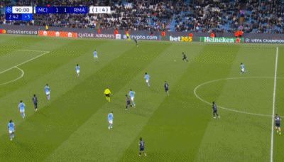 比賽最后時刻,巴爾韋德傳球,維尼修斯兩連擊破門,但是越位在先。——不過很快的,維尼修斯又進球,這回是楚阿梅尼的助攻。鏡頭給到瓜迪奧拉,一臉落寞。