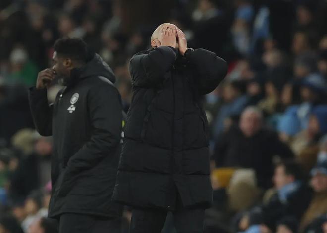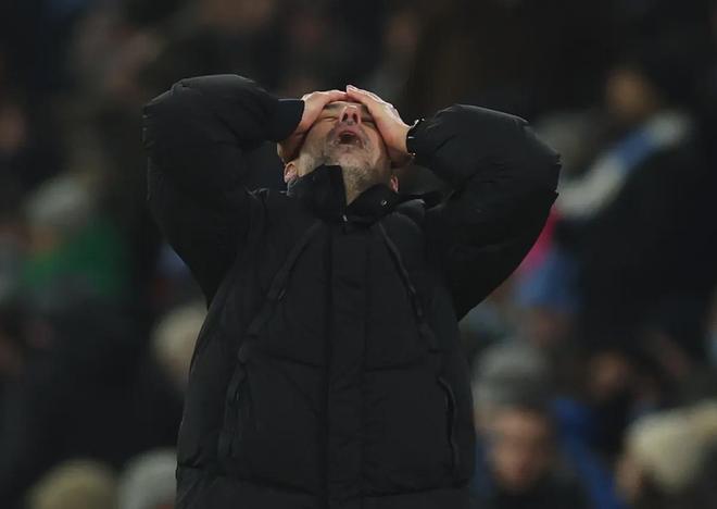 當(dāng)終場(chǎng)哨聲在阿提哈德球場(chǎng)響起,瓜迪奧拉站在原地,目光空洞地望著記分牌——1-2,總比分1-5。他沒有像往常那樣快步走向球員通道,而是久久佇立,仿佛想把這夜晚的每一個(gè)細(xì)節(jié)刻進(jìn)記憶,又仿佛只是無力挪動(dòng)腳步。