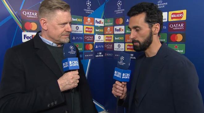 歐冠1/8決賽次回合,皇馬客場2-1戰(zhàn)勝曼城,皇馬主帥阿韋洛亞賽后接受了CBS體育的采訪。
