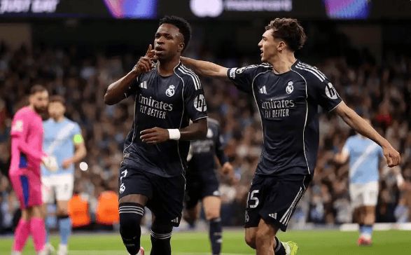 皇馬沒給曼城任何機會。首回合3-0領先已占先機,次回合開場22分鐘,B席門線手球送點+紅牌,維尼修斯一蹴而就。盡管多庫助攻哈蘭德扳回一城,但少打一人的藍月軍團難挽頹勢。下半場姆巴佩傷愈替補登場,維尼修斯讀秒再下一城,完成梅開二度。最終皇馬2-1再勝,總比分5-1淘汰衛(wèi)冕冠軍,劍指第16座大耳朵杯。
