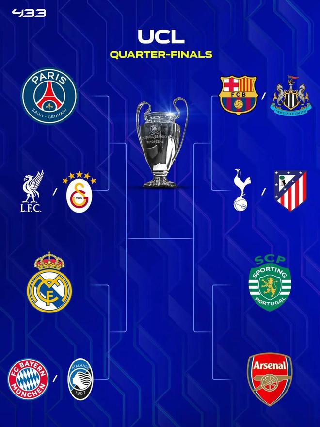 本賽季的歐冠8強已經(jīng)誕生4支球隊,皇馬、阿森納、大巴黎順利晉級,葡萄牙體育則是回到主場5球逆轉(zhuǎn)博德閃耀,成功晉級。