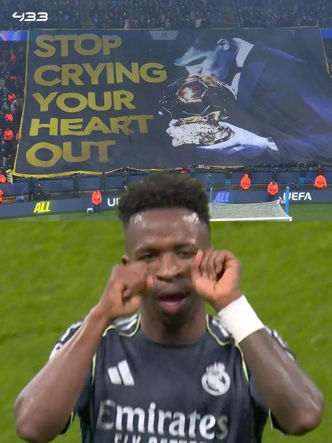 在談到自己的慶祝動作時,維尼修斯表示:“我上一次來到曼城主場時,他們一直在拿我開玩笑,說我是因為金球獎的事情哭了。這也是我向曼城球迷證明自己的一種方式。”