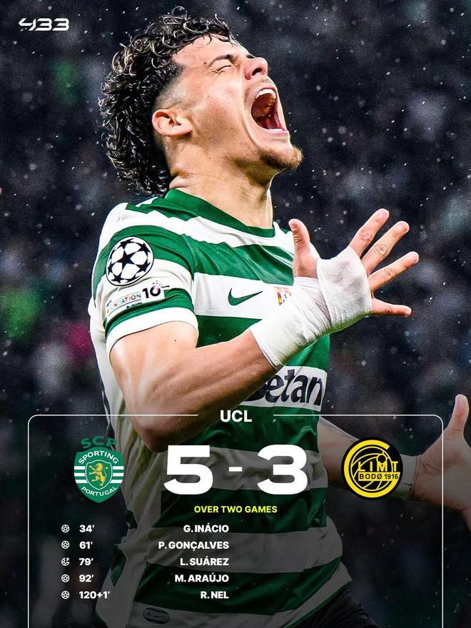 加時賽開始僅2分鐘,馬克西-阿勞霍破門,葡萄牙體育將總比分反超,比賽最后時刻,拉斐爾-內(nèi)爾破門鎖定勝局。最終,葡萄牙體育主場5-0大勝博德閃耀,兩回合總比分5-3逆轉(zhuǎn)對手晉級歐冠8強。