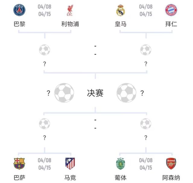 - 歐冠8強(qiáng)出爐!1/4決賽:皇馬VS拜仁 巴薩PK馬競(jìng) 巴黎大戰(zhàn)利物浦