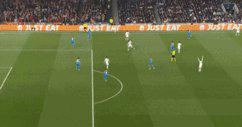 52’2比1 阿奇·格雷左路分球,哈維·西蒙斯弧頂前沿精彩兜射破門。