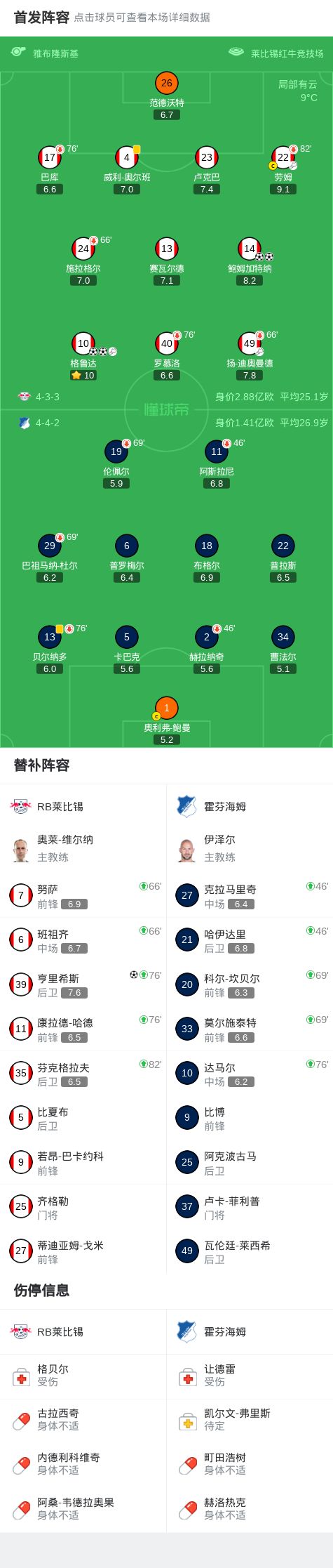 - 2026年03月21日 德甲-格魯達&鮑姆加特納均雙響 萊比錫5-0大勝霍芬海姆
