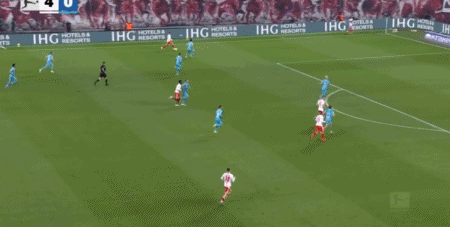 第17分鐘,格魯達門前補射破門先拔頭籌,萊比錫1-0霍芬海姆