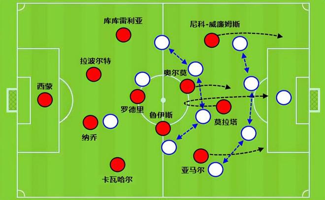 這樣一來(lái),西班牙前場(chǎng)節(jié)奏太快,但是中場(chǎng)承受不住這樣的攻防轉(zhuǎn)換。哪怕放棄使用羅德里,蘇維門迪更是靈活有余但并不能站住中路位置。