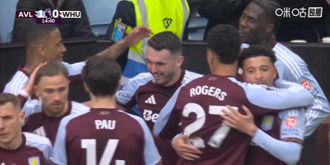第15分鐘,維拉前場左側(cè)禁區(qū)外任意球擺短橫敲,桑喬接球繼續(xù)低平球轉(zhuǎn)移到右側(cè),麥金禁區(qū)外迎球直接推射將球打進,維拉主場率先打破場上僵局。