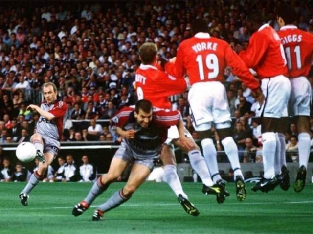 1998-99賽季,拜仁一路殺進歐冠決賽,對手是弗格森的曼聯(lián)。比賽開場僅6分鐘,巴斯勒就用一腳標志性的貼地任意球,洞穿了舒梅切爾的十指關(guān)!