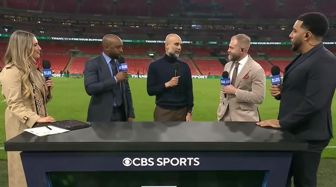 北京時(shí)間3月23日,曼城在溫布利2-0擊敗阿森納成為聯(lián)賽杯冠軍。賽后,曼城主帥瓜迪奧拉接受了CBS體育的采訪。