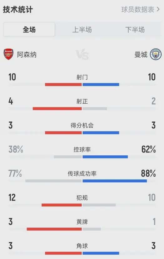 來看看數(shù)據(jù):控球率38%對62%,射正4對2。