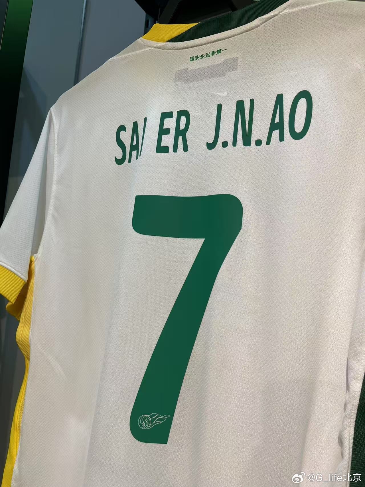 03月16日訊 國(guó)安商店上架塞爾吉尼奧的7號(hào)球衣,印號(hào)是“SAI ER J. N. AO”。