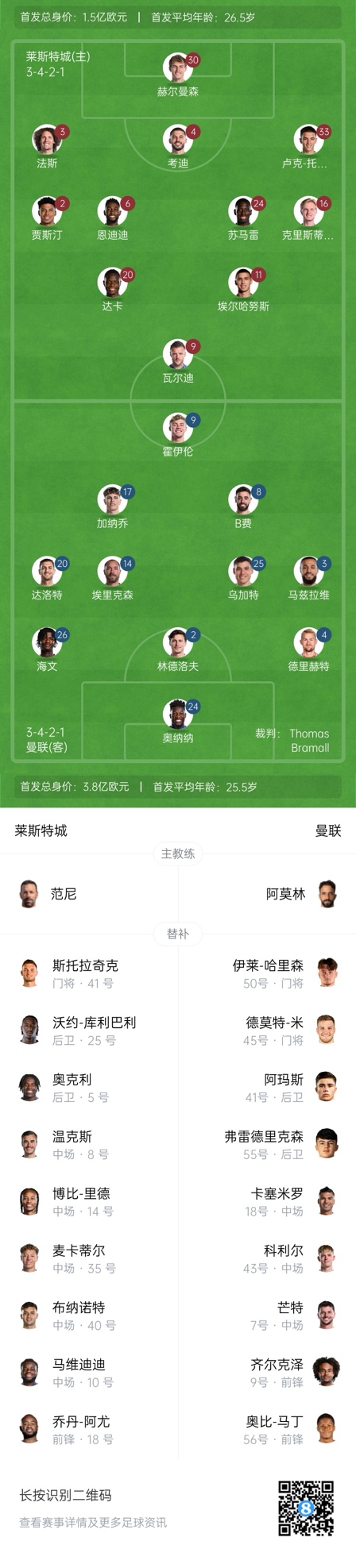本場比賽,芒特傷愈復(fù)出、替補(bǔ)待命。對(duì)此,阿莫林說道:“雖然他還是一名年輕球員,但在英超的經(jīng)驗(yàn)已經(jīng)很豐富了。我很高興又有一名球員復(fù)出?!?/span>