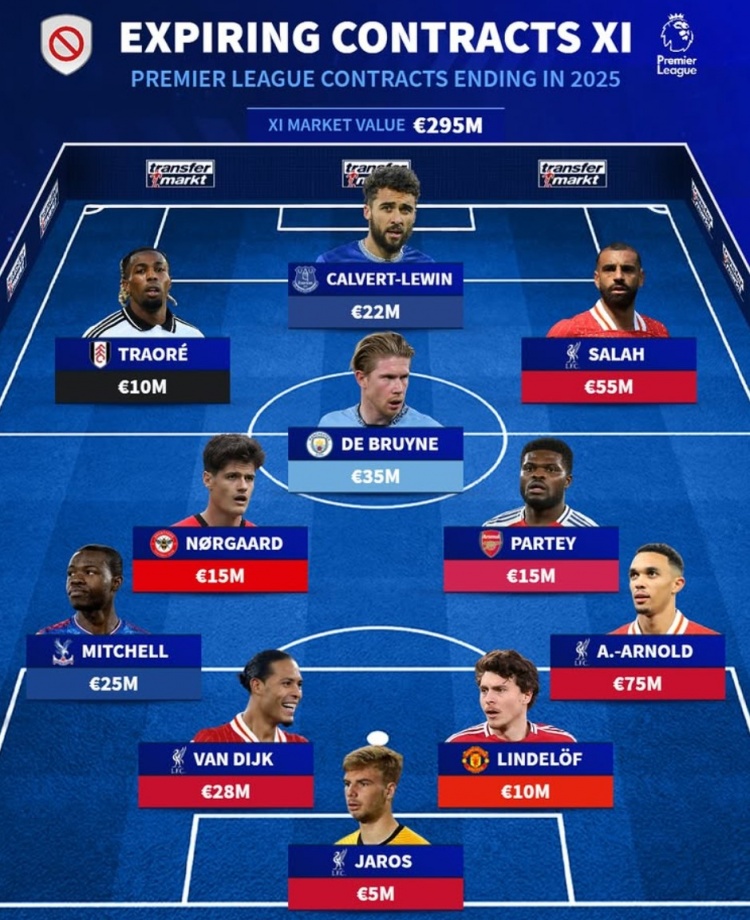 3月18日訊 《轉(zhuǎn)會市場》統(tǒng)計了英超球員今夏合同到期最貴陣,利物浦4將在列。
