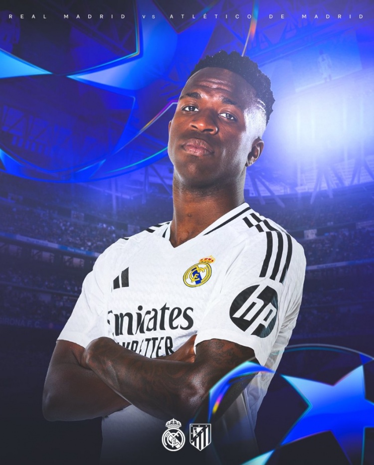 賽前,皇馬官方曬出海報,為本場比賽預(yù)熱,維尼修斯單人出鏡,海報下方為對陣雙方隊徽,還有右下角的歐冠標(biāo)志。