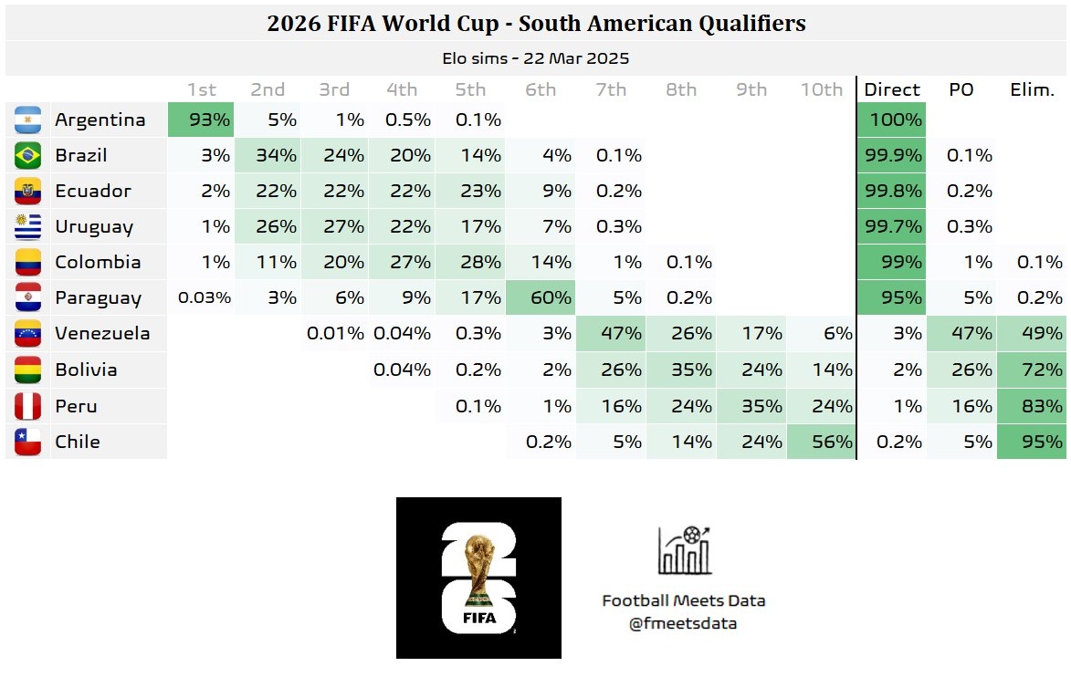 最新世預(yù)賽南美區(qū)晉級概率
