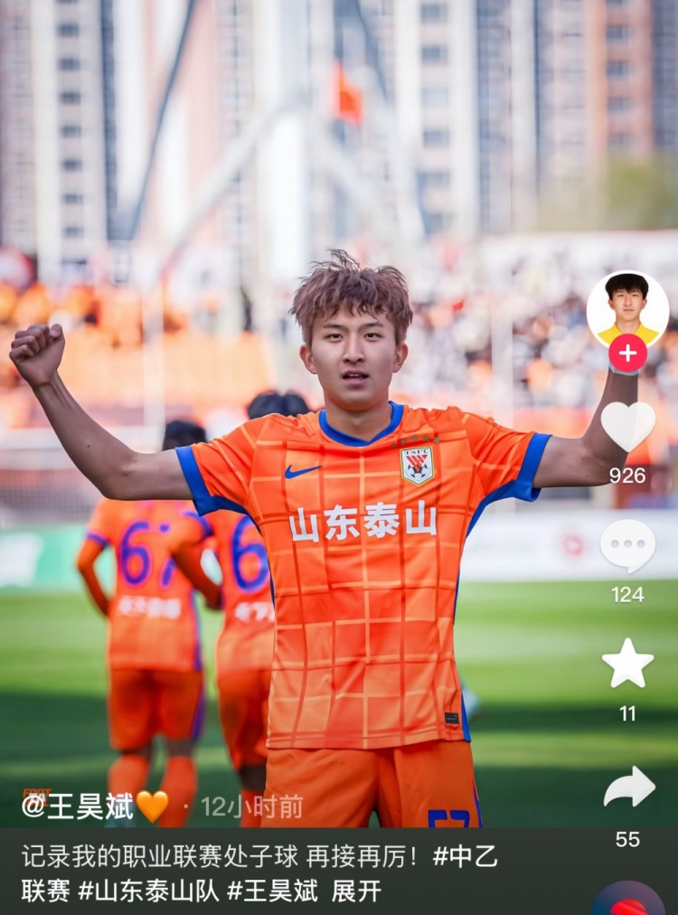 3月23日訊 泰山B隊球員王昊斌更新社媒,記錄了自己職業(yè)生涯的處子進球。