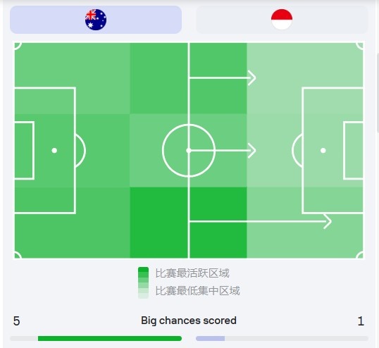 澳大利亞玩的就是效率,控球率、進(jìn)攻三區(qū)進(jìn)入次數(shù)比印尼還少,可比分卻是大勝(藍(lán)色方為印尼)