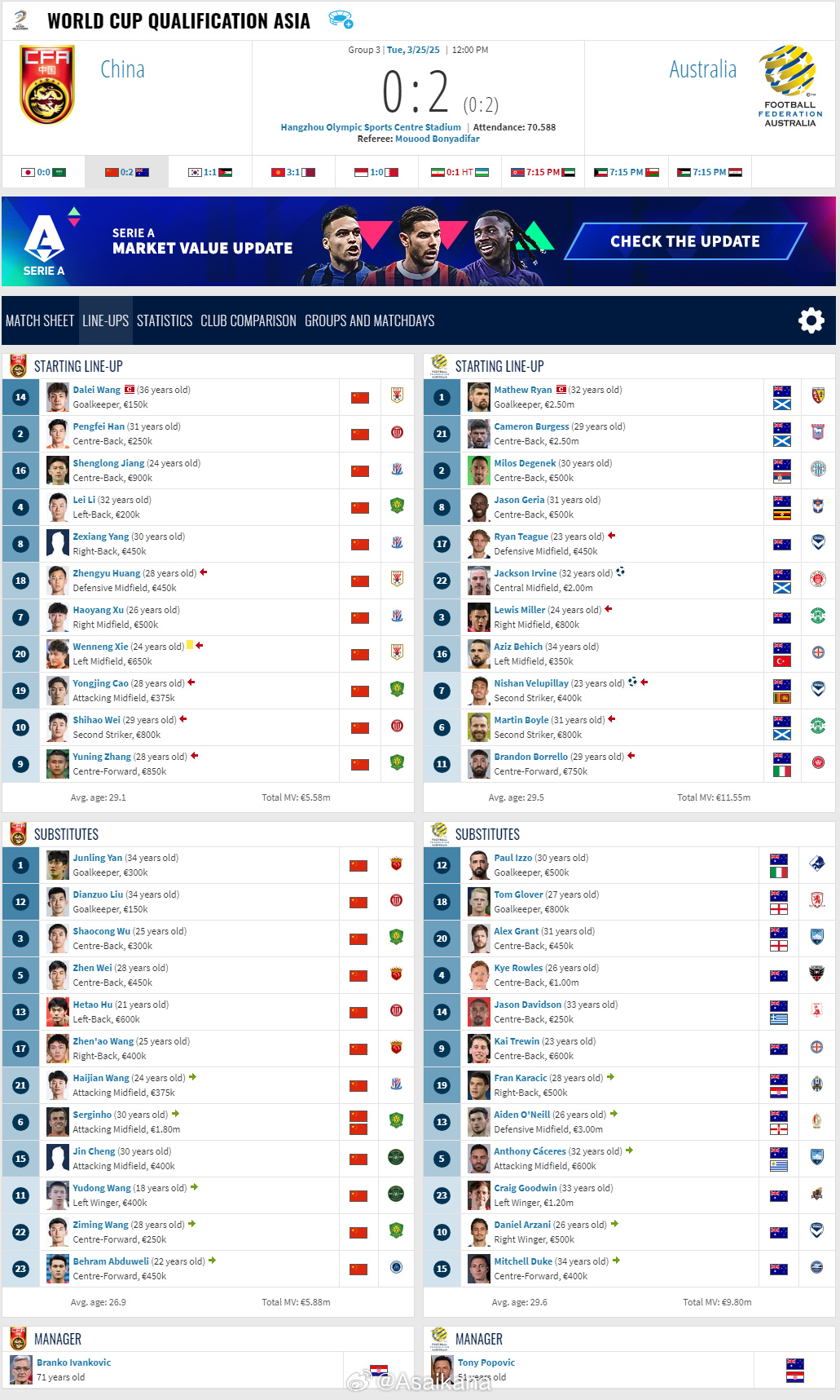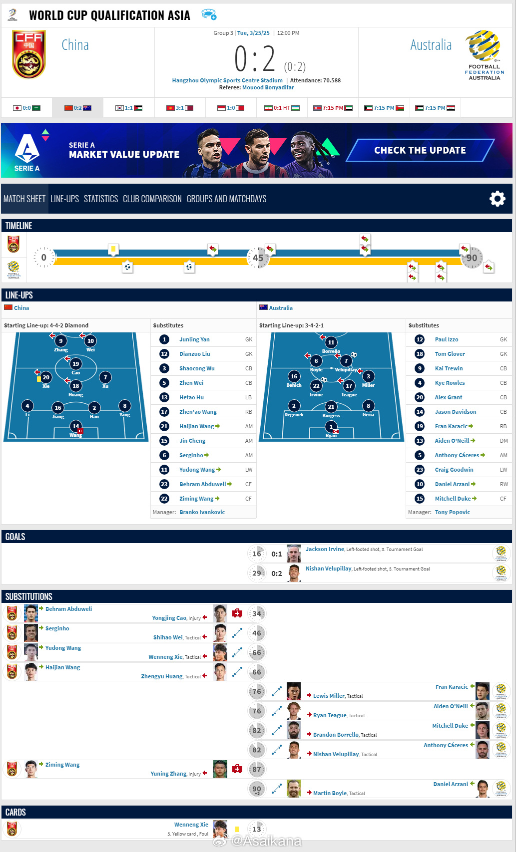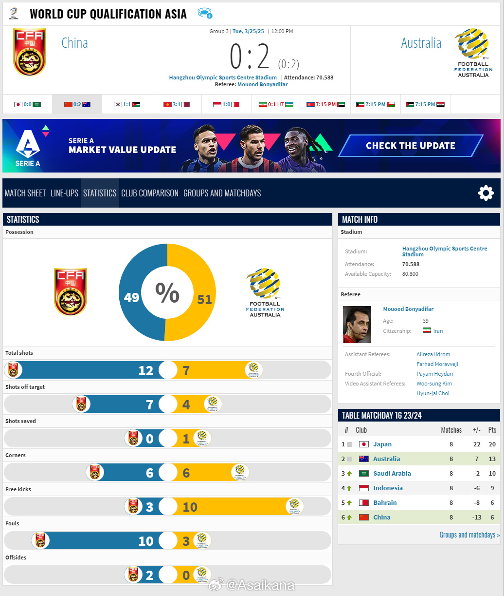 2026年美加墨世界杯亞洲區(qū)預(yù)選賽,中國0-2澳大利亞比賽報告 ???。