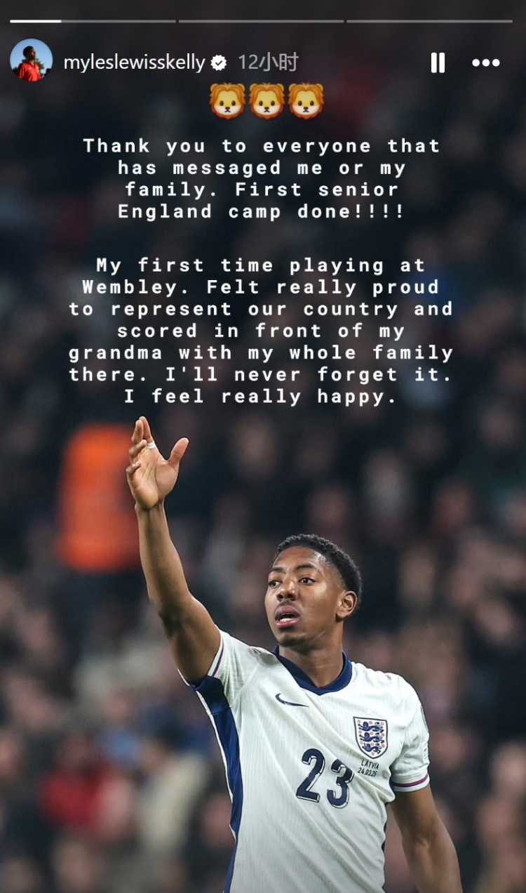 斯凱利寫道:“感謝所有為我和我的家人送上問候的人,首次英格蘭一線隊之旅結束了?。?!這是我第一次在溫布利球場踢球。能為國出戰(zhàn),并在奶奶和全家面前進球,我倍感驕傲。我永遠不會忘記,也感到非常開心?!?/p>