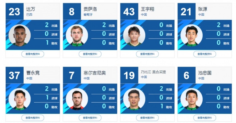 但在塞爾吉尼奧個(gè)人的資料當(dāng)中,中足聯(lián)官網(wǎng)尚未及時(shí)更新,目前顯示的依然是他上賽季的資料。