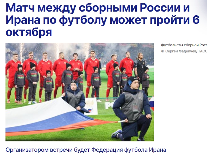 - 即將解禁!俄羅斯將于10月6日與伊朗進行友誼賽