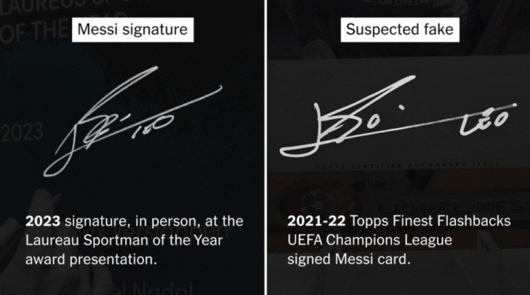 3月27日訊 The Athletic深度報道了一件涉及梅西簽名球星卡被指為“假簽名”的事件,引發(fā)了收藏界對于球星簽名真?zhèn)蔚馁|(zhì)疑。
