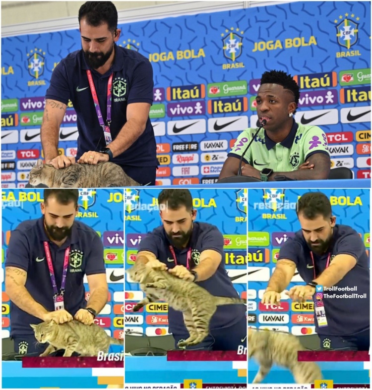 這是2022年12月8日,維尼修斯參加新聞發(fā)布會(huì),一只貓貓被新聞官無情扔走~自此巴西一蹶不振……