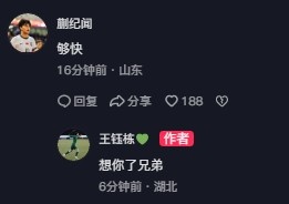 隨后他在U20國(guó)足的隊(duì)友蒯紀(jì)聞留言寫道:“夠快?!蓖踱晽潉t回復(fù)稱:“想你了兄弟?!?/p>