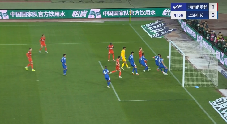 比賽第41分鐘,申花后防混亂,鮑亞雄出擊失誤,吳曦門線解圍,隨后阿奇姆彭助攻邁達(dá)納頭球破門,吳曦在球門內(nèi)還試圖用手把球擋出,但未能阻止皮球入網(wǎng)。河南1-0領(lǐng)先申花!