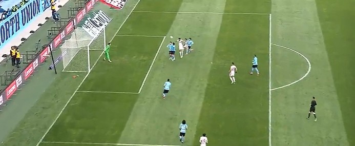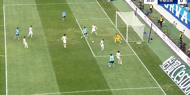 第14分鐘,亞泰左路玄智健下底傳到禁區(qū)徐越門前頭球頂偏了。↓