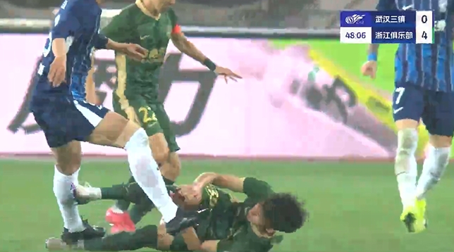 在比賽第47分鐘,鄭凱木從身后別倒王鈺棟,同時(shí)在王鈺棟倒地后,鄭凱木落地正好踩中王鈺棟腳踝,王鈺棟痛苦倒地,隨后受傷下場(chǎng)。
