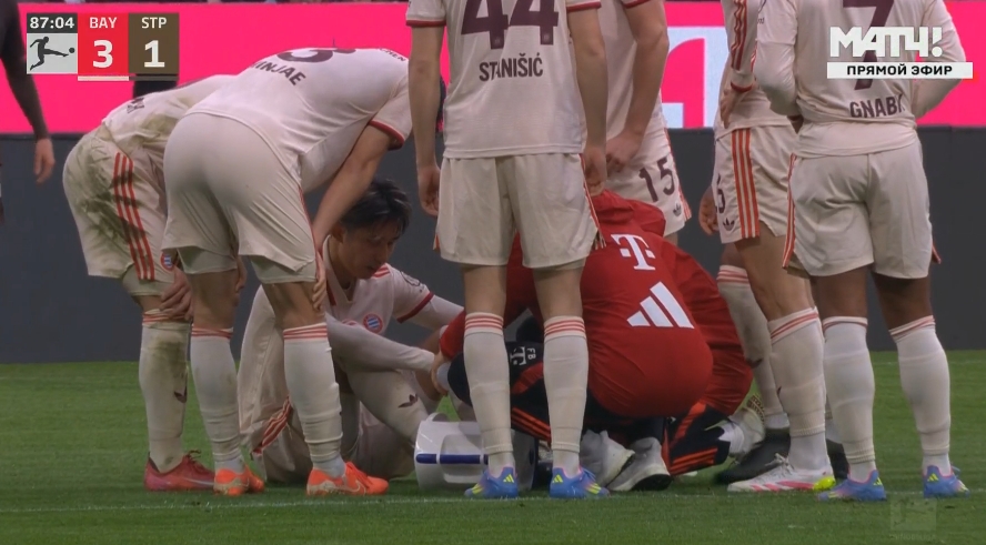 03月30日訊 拜仁vs圣保利第87分鐘,伊藤洋輝在一次防守中受傷,坐地不起。