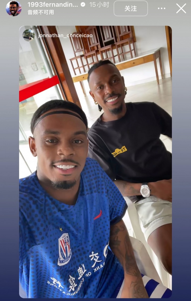 費南多社媒曬出和身穿申花球衣友人合照,目前他的下家仍未確定